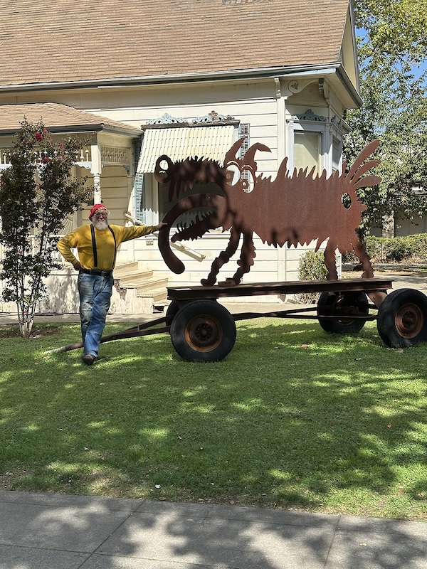 Tall Paul Brown, a neighbor, and his homemade tall bike. If an artist can't make