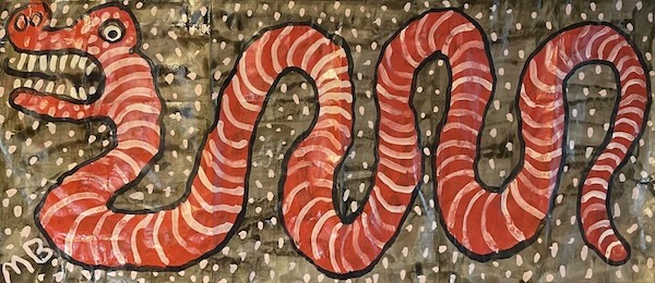 Of snakes drawn on paper grocery bags